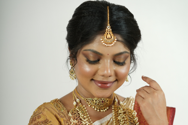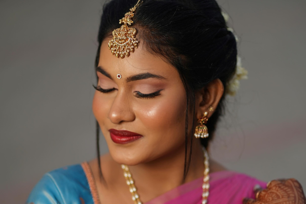 Every bride is unique, and our makeup approach reflects individuality, style, and tradition. From skin preparation to final finishing, we use premium products that provide a smooth, radiant, and camera-ready finish. Our expertise includes traditional bridal looks, modern minimal styles, and customized makeup based on outfit, jewelry, and ceremony. We ensure long-lasting makeup that remains fresh through rituals, emotions, and celebrations. Special care is taken for complexion correction, eye detailing, and lip balance to create a harmonious bridal appearance. We coordinate with hairstyling and draping to deliver a complete, polished bridal transformation. Our goal is to make you feel calm, confident, and stunning while creating memories you’ll cherish forever. With professional techniques and artistic precision, we help you shine beautifully on your special day.